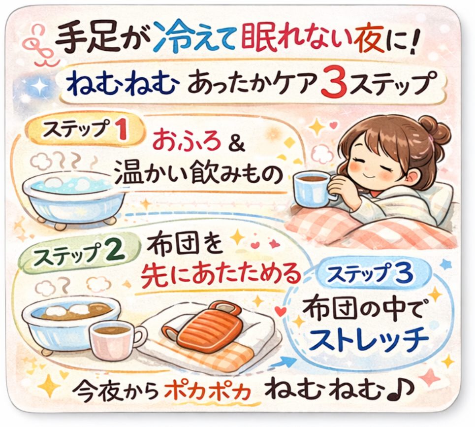 手足が冷えて眠れない夜は、いきなり何でもやるより、順番を決めるとラクです。